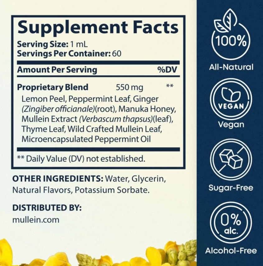 🔬 In a 2016 study (University of Illinois), Mullein matched strong expectorants in reducing mucus — with no side effects. A 2020 animal study also showed it improved overall lung function.