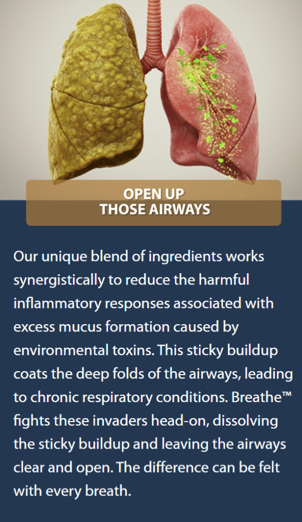 Lung Clean-Up: Breathe™ kicks the lungs’ natural cleaning system into high gear. It’s like a power wash for the airways.