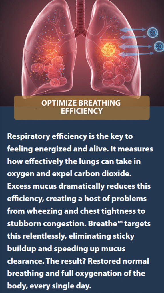 ”Breathe™ isn’t just another supplement. It’s my promise to you — backed by two decades of clinical experience and grounded in real science. It doesn’t mask symptoms. It clears toxic mucus at the root, so you can finally breathe fully again.