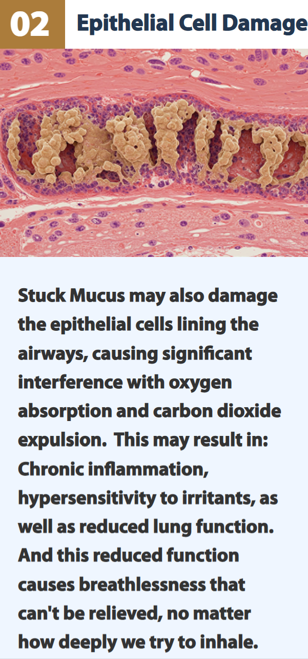 As this mucus hardens, your airways painfully narrow. This constriction starves your body of oxygen, causing crippling fatigue and short, shallow breathing.